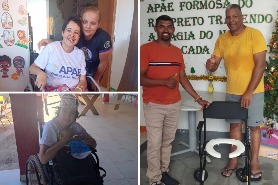 Nesta sexta-feira (10), a APAE de Formosa do Rio Preto, no oeste da Bahia, publicou em suas redes sociais uma nota de agradecimento a Washington Luiz e ao Pastor Santos pela doação de uma cadeira de rodas à instituição.
