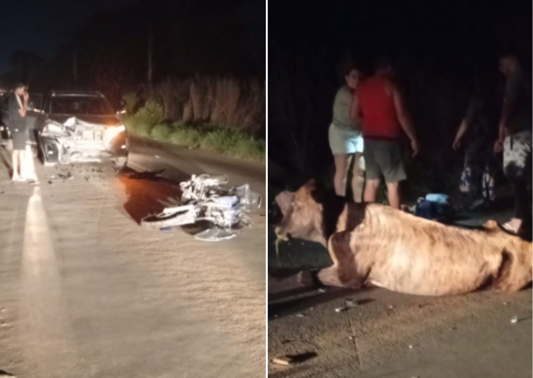 De acordo com as informações iniciais, o casal seguia em uma Honda CG Titan 160 quando acabou atingindo uma vaca que estava solta sobre a rodovia. O impacto foi violento e causou a morte imediata do condutor.
