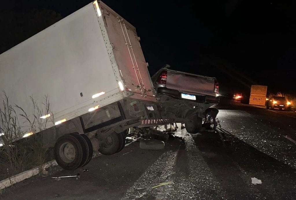 No local, os bombeiros confirmaram a colisão entre um caminhão baú modelo Ford F-4100 e uma picape Toyota Hilux, ambos transportando dois ocupantes cada.
