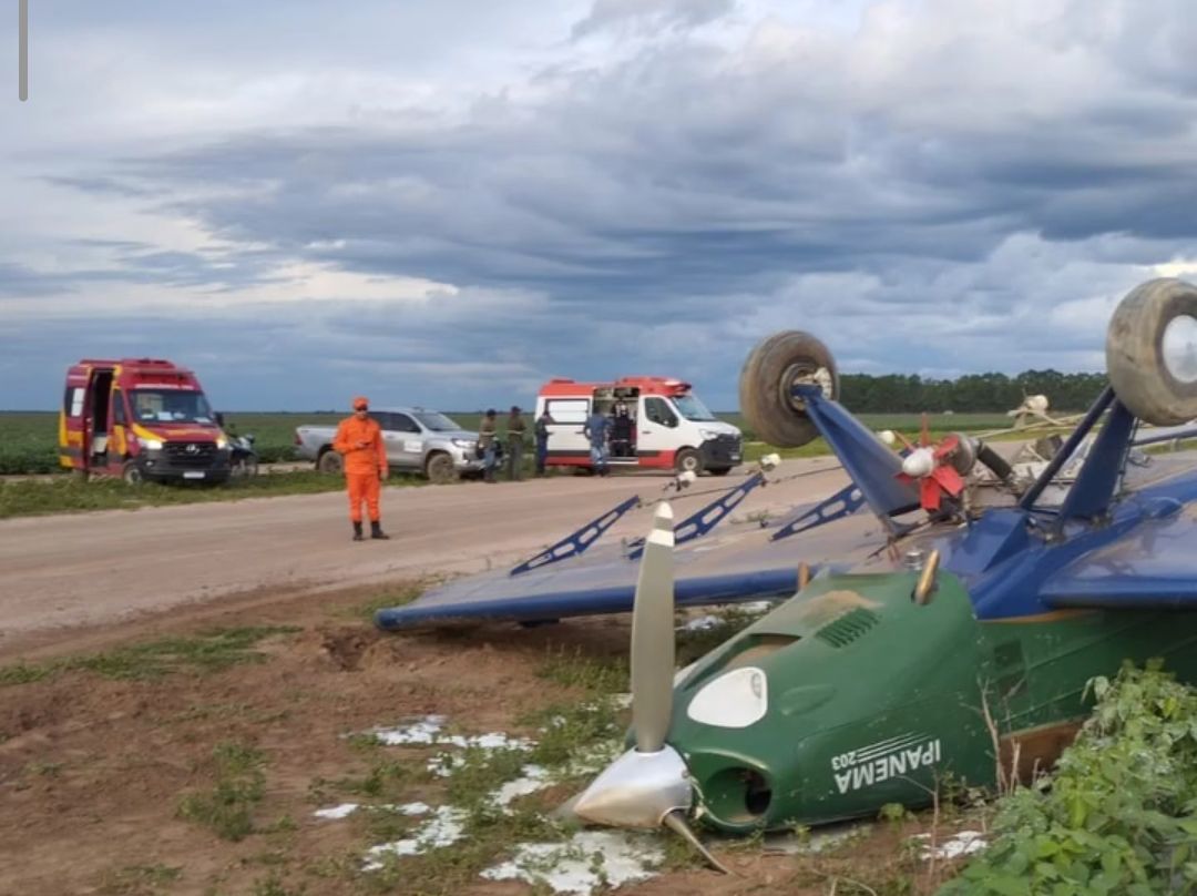 O avião capotou durante o pouso em uma fazenda localizada a cerca de 90 quilômetros da sede do município, em uma área próxima à divisa com o estado de Goiás.