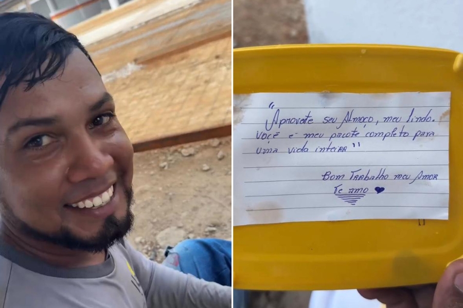 Um trabalhador que atuava em uma obra recebeu o almoço enviado pela esposa e, junto com a marmita, encontrou um bilhete escrito à mão que emocionou quem acompanhou a cena.