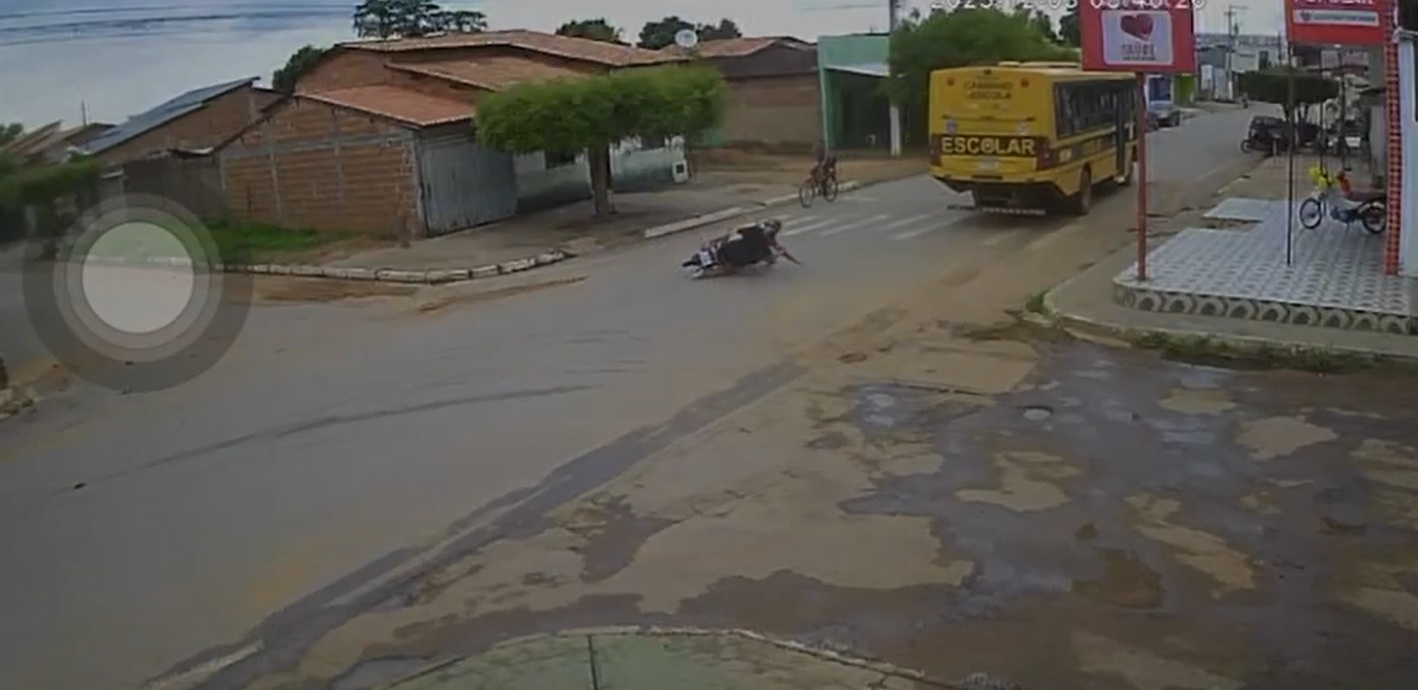 Na tarde de quinta-feira, 4 de dezembro, uma câmera de segurança captou o instante em que duas pessoas caíram de uma motocicleta na Avenida Joaquim Augusto da Silva, no bairro Santa Helena, em Formosa do Rio Preto, região Oeste da Bahia.