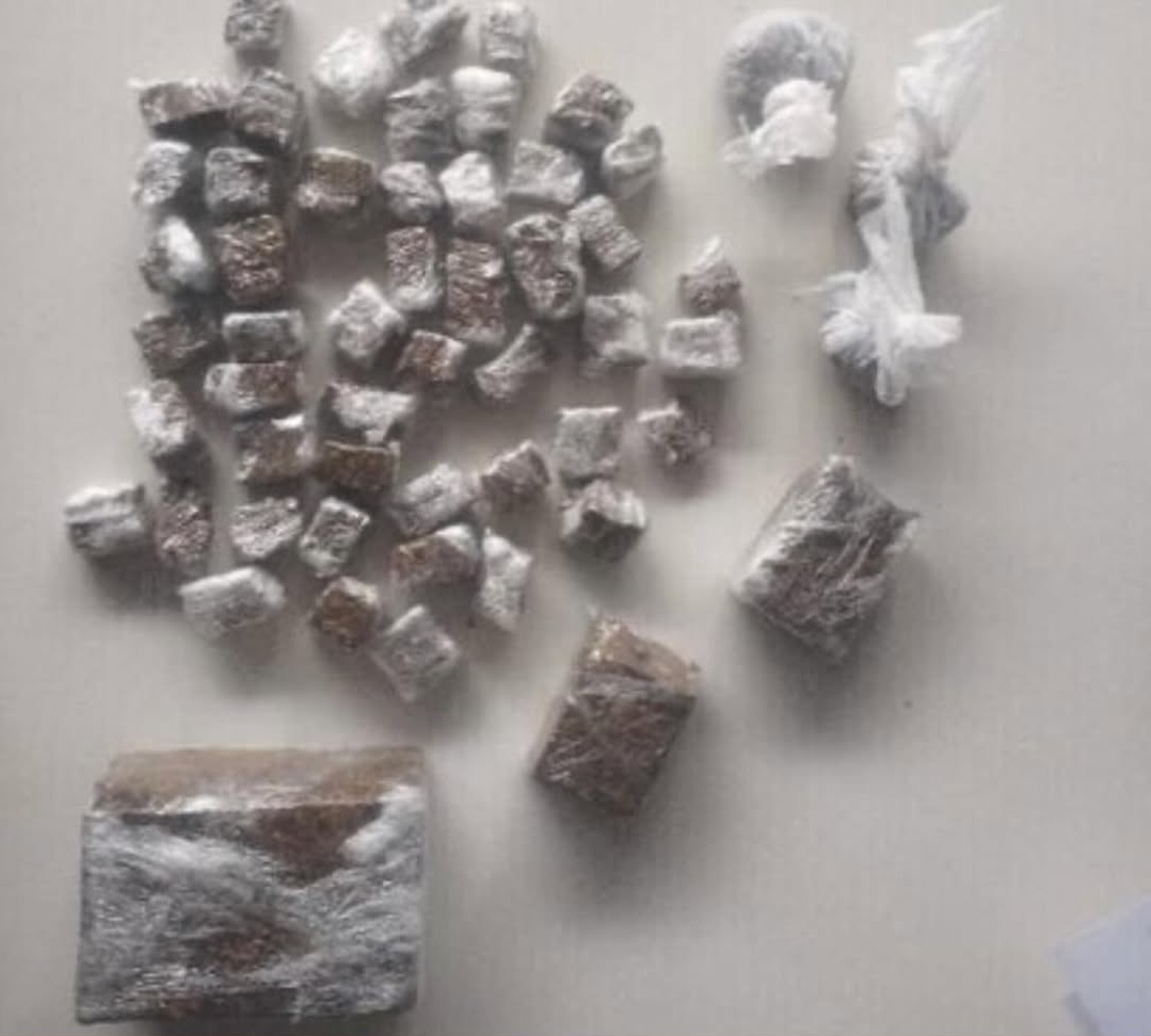 Durante a abordagem, os policiais encontraram 52 trouxinhas e três tabletes médios de substância análoga à maconha, todos embalados de forma típica para comercialização.