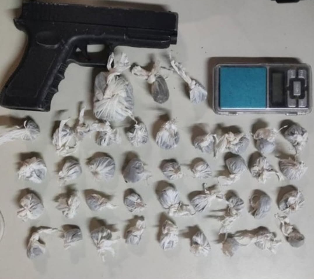 Ao chegarem ao local, os policiais localizaram o suspeito e realizaram abordagem. Durante a revista, foram encontradas oito trouxinhas de substância análoga à maconha no bolso do adolescente.