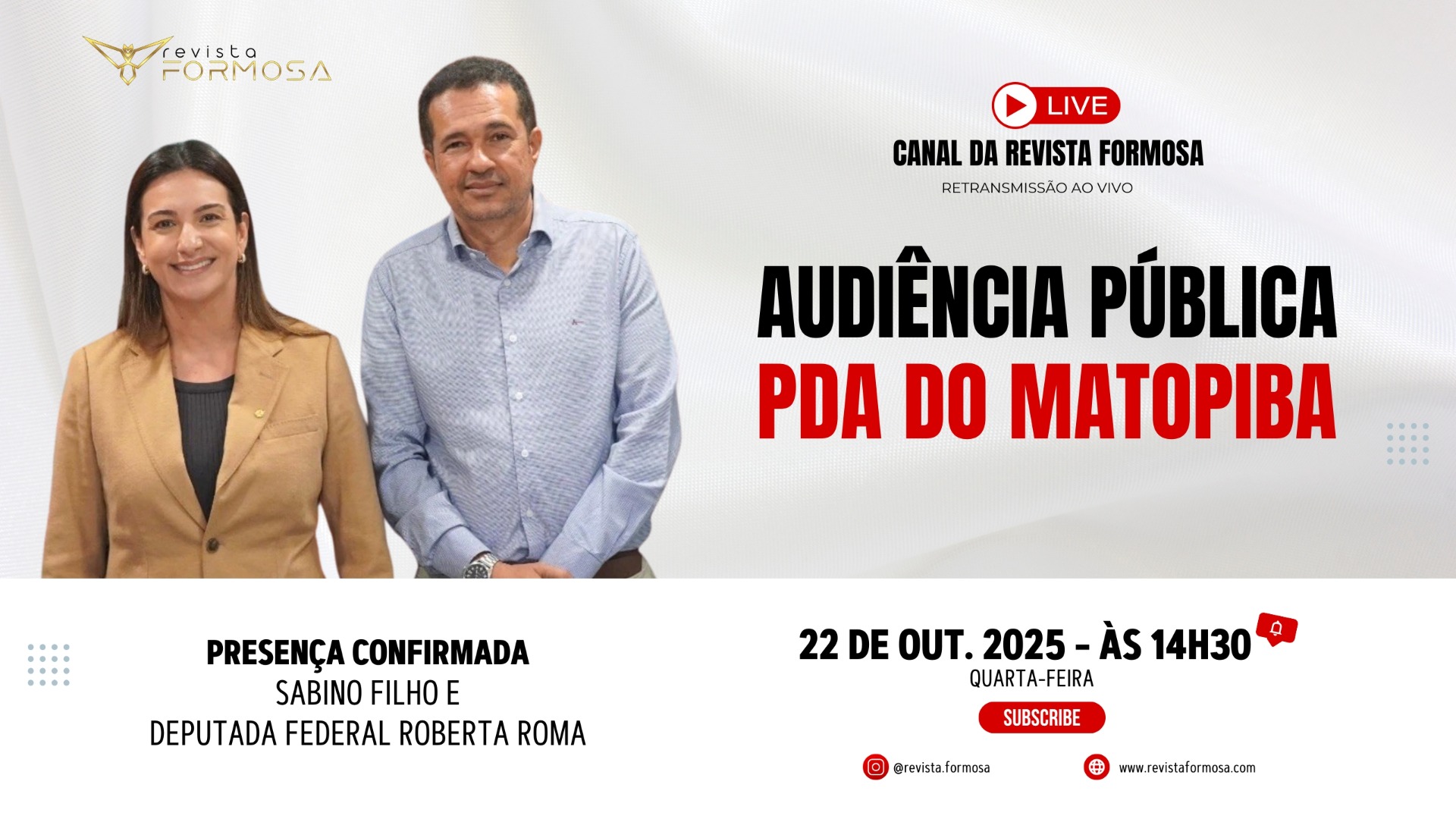 A Revista Formosa fará a retransmissão da audiência pública que discutirá o Plano de Desenvolvimento Agropecuário e Agroindustrial do Matopiba (PDA), no próximo dia 22 de outubro, às 14h30, direto do Plenário 6 do Anexo II da Câmara dos Deputados, em Brasília.