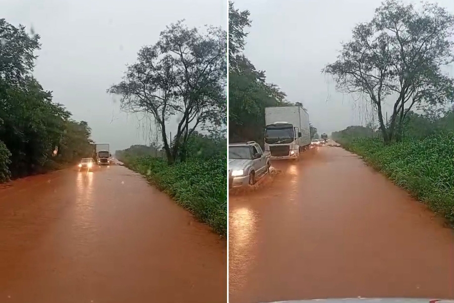 A situação chamou a atenção de motoristas que trafegavam pela rodovia, principalmente devido ao acúmulo de água sobre a pista.